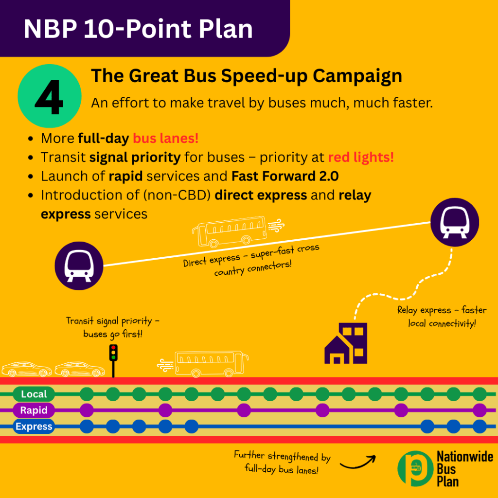 In our Transport Manifesto 2050, this is why we place emphasis on various aspects of speeding up our buses in particular, through the extensive usage of full-day bus-only lanes, signal priority at junctions, and the introduction of rapid-stop bus services (both new routes, and upgrades from existing trunk services). This is so that bus resources can be freed up to either improve other local services needing enhancement, or introduce new routes that enhance access in underserved towns, today and tomorrow.