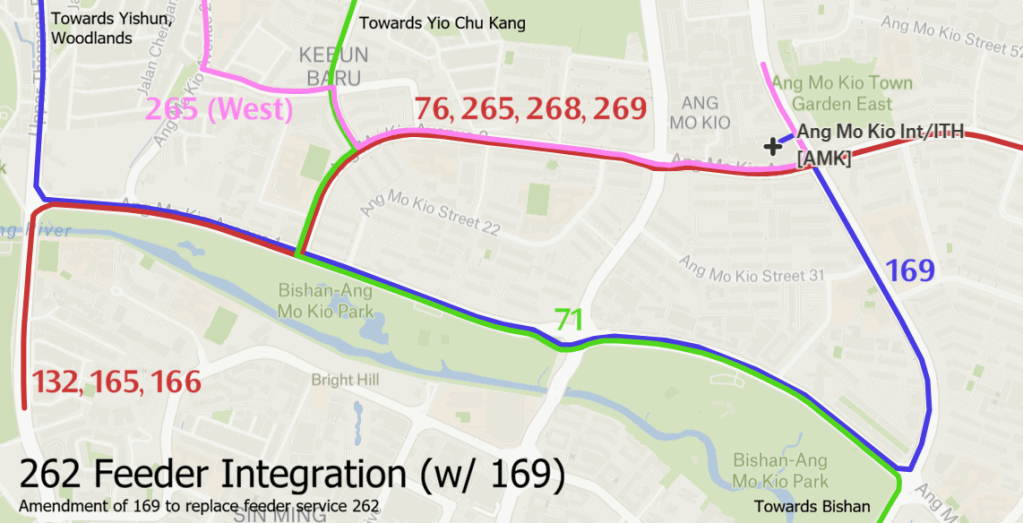 Instead of an infrequent feeder serving residents in western Ang Mo Kio and a frequent trunk carrying fuck all throughout the day as a result of duplication, a smart way to rebalance resources is to amend the frequent trunk service to ply the feeder’s route, reducing the number of buses needed in total, and enhancing last-mile journeys for residents along the former feeder route. In this case, it entails discontinuing feeder 262, and amending 169 to ply its route in lieu of it.