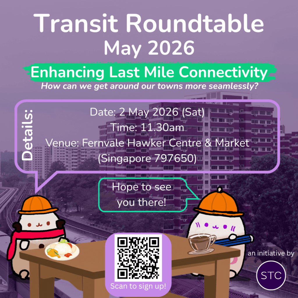 For this May’s Transit Roundtable, North-Easties rejoice again! — the Transit Roundtable will be held at a coffeeshop within reach of our proposed Fernvale LRT, Fernvale Hawker Centre, accessible by bus 50, 114 or 163, or by walking in from Fernvale LRT.